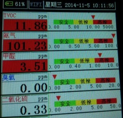 1、下圖是儀器通上101ppm的氨氣,請注意TVOC的濃度值。TVOC顯示11.86ppm。這和準確度有什么關系呢?請看第2張圖解答真相。