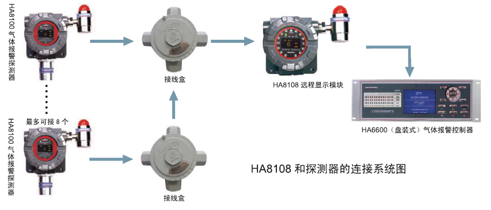 l 探測器向氣體報(bào)警控制器傳送標(biāo)準(zhǔn)4~20mA信號(hào)的能力不受影響,即可在HA8108模塊和控制器兩處同時(shí)顯示探測器狀態(tài)。