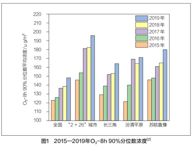 自2013年相繼實(shí)施《大氣污染防治行動計(jì)劃》《打贏藍(lán)天保衛(wèi)戰(zhàn)三年行動計(jì)劃》以來,我國環(huán)境空氣質(zhì)量改善效果明顯,空氣中二氧化硫(SO2)、二氧化氮(NO2)、可吸入顆粒物(PM10)、細(xì)顆粒物(PM2.5)、一氧化碳(CO)濃度顯著下降,尤其是PM2.5污染控制取得顯著成效,但是臭氧(O3)污染卻呈逐年加重的趨勢,O3污染防控形勢嚴(yán)峻。