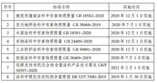 國家及我省涂料產(chǎn)品標(biāo)準(zhǔn)與實施時間