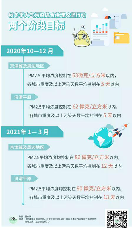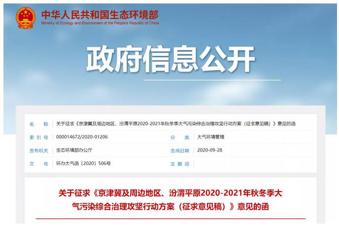 2020-2021 年秋冬季是第 4 個攻堅季,事關全面建成小康社會,事關“十三五”規(guī)劃和打贏藍天保衛(wèi)戰(zhàn)圓滿收官。9月28日,生態(tài)環(huán)境部發(fā)布《京津冀及周邊地區(qū)、汾渭平原2020-2021年秋冬季大氣污染綜合治理攻堅行動方案(征求意見稿)》,持續(xù)開展秋冬季大氣污染綜合治理攻堅行動,確保如期完成打贏藍天保衛(wèi)戰(zhàn)既定目標任務。
