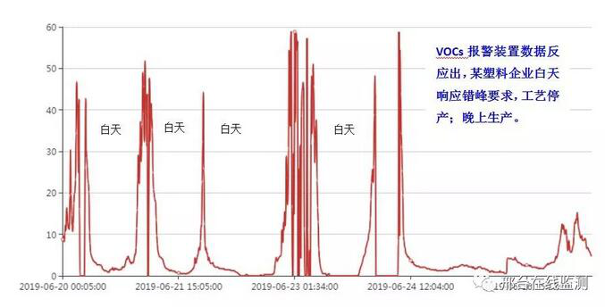 3、VOC超標(biāo)報(bào)警監(jiān)測系統(tǒng)是企業(yè)錯峰生產(chǎn)時(shí)“自證清白”的有力證據(jù)。臭氧濃度高峰時(shí)大氣污染防治部門一般要求采取錯峰生產(chǎn),高溫時(shí)段10-16時(shí)涉VOCs排放單位不得生產(chǎn),通過VOCs監(jiān)測數(shù)據(jù)的變化可以直接反應(yīng)企業(yè)是否落實(shí)錯峰生產(chǎn)制度,為企業(yè)提供數(shù)據(jù)支持。